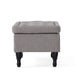 - Versatile Grey Fabric Ottoman – Upholstered in soft grey fabric, this ottoman offers seating comfort, concealed storage, and chic dark wooden legs for any room.