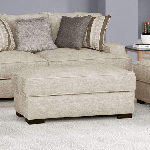 Upholstered in chenille and accented by a variety of beige highlights, this ottoman exudes an aura of warmth and welcome. Chic and brimming in soft...