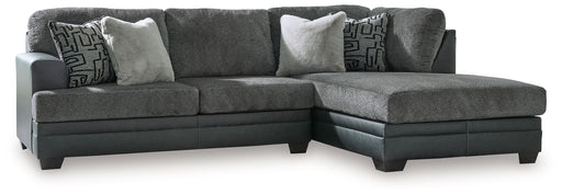 Appeal to your eye for ultra-contemporary design with this sectional. Chic and sleek in dark neutrals, it pairs cozy fabric with faux leather for i...