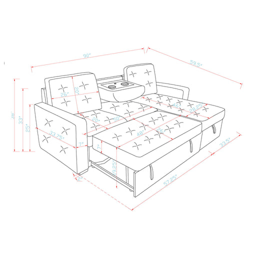 Pull Out Sofabed: Converts easily into a full-sized bed for convenient guest accommodation Storage Chaise: Offers additional space to store beddin...