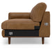 - Sturdy, corner-blocked frame made with solid and engineered woods includes high-quality, high-resilience webbing on the back to provide support; webbing and high-gauge sinuous springs under the seat to prevent sagging; and solid wood legs and plinth in a brown finish.
