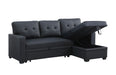 Upholstered Pull Out Sectional Sofa With Chaise - Black