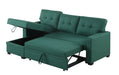 Upholstered Pull Out Sectional Sofa With Chaise - Green