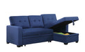 Upholstered Pull Out Sectional Sofa With Chaise - Blue