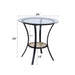 The Frydel is the perfect table set for your home. This three-piece round table set includes a glass tabletop with a rattan lower shelf and black frame, as well as two rattan chairs with a plush seat cushion. The glass and rattan, so it's easy to clean. The set is sturdy and durable. You can use it to bring some extra seating into your living room for parties and get-togethers.