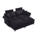Modern Corduroy, Deep Seat Sectional Sofa With Ottomans, Comfortable Cloud Sofa - Black