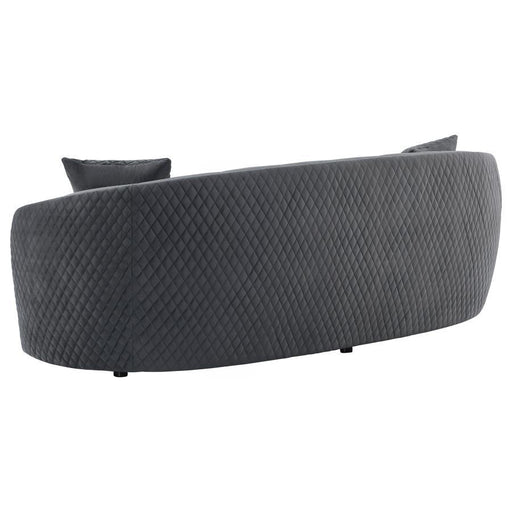 Arched arms, lustrous accents, and elegant tones give this sofa a combination of simplicity and splendor. Includes accent pillows for added style a...