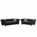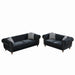 Chesterfield 3 And 2 Seater Velvet Upholstery Sofa With Roll Armrest & Nailhead Fabric Couch For Living Room & Office - Black