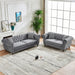 Chesterfield Velvet Upholstery Fabric Sofa With Roll Armrest & Nailhead, 3 And 2 Seater - Gray