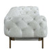 This Ragle chesterfield sofa brings both modern and impressive style to your living space with luxurious Vintage White top grain leather upholstery. Diamond-tufted backrest to smooth and extremely comfortable high-density full foam cushions for a seating experience that lives up to this sofa's polished look. Steady metal legs add a tailored touch to this modern-day classic.