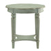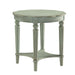 The French country-inspired Fordon occasional table is gracefully designed and made from quality materials. Scalloped round table top, turned legs and a bottom shelf, each piece is carefully crafted while superb functionality is kept in mind. This occasional collection is available in both of coffee and end table, with 3 inviting antique colors of green, slate and white.