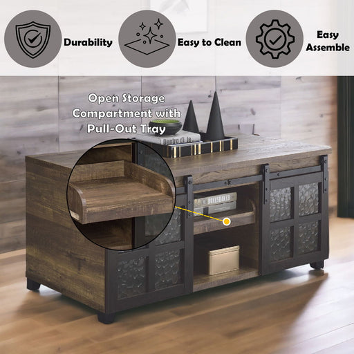 Winam - Coffee Table - Antique Oak & BlackProduct Features Foldable, Rectangular Coffee Table Storage: 1 Compartment (4 Metal Sliding Door) Inc...