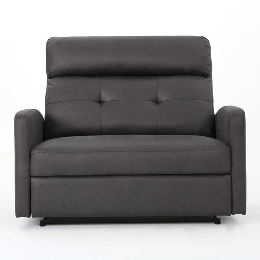 Seamlessly blend contemporary aesthetics and uncompromising comfort with this reclining loveseat. Its handsome charcoal-hued faux leather has a tai...