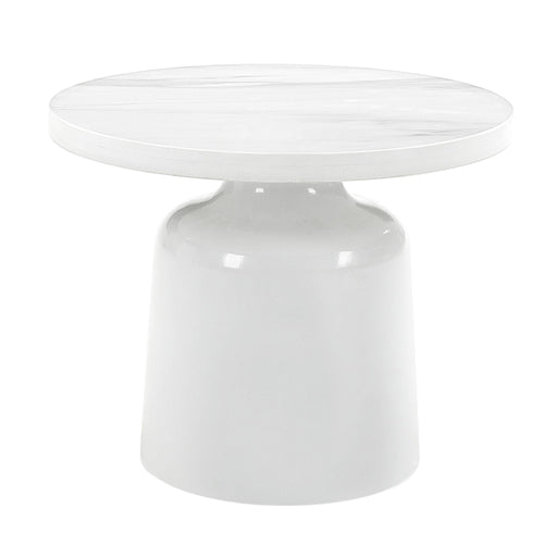 This modern end table combines bold design with a sleek two-tone finish, ideal for contemporary spaces. The round faux marble top in white adds ele...