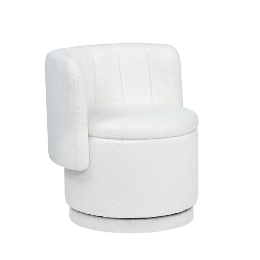 Design: Swivel chair with a barrel back design for modern elegance. Fabric: Cream shearling fabric offers a soft, luxurious feel. Cushion: Removab...