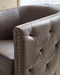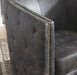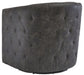 Complete your cozy reading nook or chic seating area with this swivel accent chair. Handsome with its dark faux leather upholstery, the seating is perched on a 360-degree swivel base for the perfect blend of style and function. Design details like tufted sides and antiqued brass nailheads complete the look with added flair.