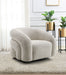 - Swivel Design: The Irma Gray Boucle Chair features a 360-degree swivel mechanism, allowing for flexible movement and easy reorientation without needing to move the entire chair.