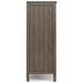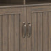 - Transitional design includes grooved detail on front, sides and brushed bronze handles