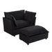 Modern Armchair Sofa Cozy Upholstered Sofa Chair With Movable Ottoman Chenille, Wide Seat & Curved Armrests - Black