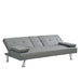 Modern Sofa Bed With Armrest 2 Holders, Wood Frame & Stainless Leg, Futon Style - Gray