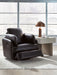Looking cool and contemporary is great. But when it comes down to it, you’re all about affordably luxurious lounging. With the top grain leather and expertly matched faux leather on this swivel glider recliner, you get the sleek look you love without breaking the bank. Its easy one-pull reclining motion effortlessly brings you to a reclined and relaxed position. So grab some popcorn, settle in and enjoy the show.