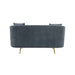 Spark memorable conversations with the sublime curved back Nakendra loveseat. Finely upholstered in soft, cobalt blue chenille and generously padded in dense foam, creating a premium seating experience for you and your guests. This tailored statement piece is perfect for the modern living room, entryway, lounge area, or bedroom. Doubling as an settee for your extra seating needs in your home or apartment, sublime comes positioned on four tapered and Splayed gold metal legs with non-marking foot caps.
