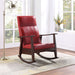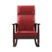 - Elegant Design: This rocking chair features smooth synthetic leather upholstery in two sophisticated colors, red and dark brown, paired with an espresso-finished frame for a rich and stylish appearance.