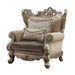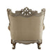 - Oversized Scrolled Carving Trim with Nailhead Trim: Detailed Accents Inside/Outside Backrest: Champagne Finish, Poplar Wood (Front Armrest, Leg & Base)