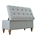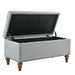 Elegant Ottoman Storage Bench With Recessed Support Hinge, Rivet Trim Linen - Gray