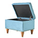 Retro Style Square Velvet Upholstered Ottoman With Storage And Rivet Trim - Light Blue