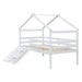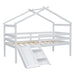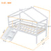 Low Loft House Bed With Slide, Ladder, Safety Guardrails, House Roof Frame