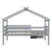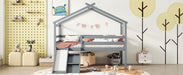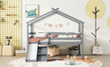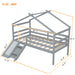 Twin Low Loft House Bed With Slide, Ladder, Safety Guardrails, House Roof Frame - Gray
