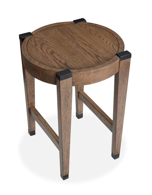 Kaysen - Round End Table - Dark BrownProduct Features Crafted From Hi Low Oak Veneer And Hardwood Solids And Metal Wallaby And Matte Black Finish M...