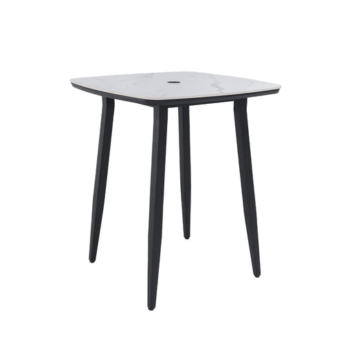 Spacious Tabletop Design: Measures 35.4'' x 35.4''; comfortably fits four bar chairs for dining and entertaining Durable Aluminum Frame: Rust-resi...