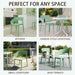 - Durability: Powder-coated metal table legs resist wind, rain and humidity without easy fading. The tabletop and chairs, made of polypropylene, have stain, wear and UV resistance (suitable for over 17,520 hours of outdoor use).