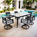 7 Pieces Modern Outdoor Patio Dining Set, Rectangular Dining Table, 6 Swivel Rockers With Sunbrella Cushions - Ember Black