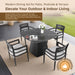- Stylish & Safe Tabletop Details: marble-inspired finish with softly curved square shape, polished edges, and chamfered corners for added safety and style; includes 2" umbrella hole with a matching aluminum cap.