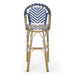 Outdoor Rattan French Barstool Set,, Bamboo, Seat Height - Navy Blue / White