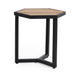 Outdoor Side Table With Iron Base And Slatted Top - Brown