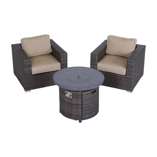 Rattan Patio Set With Comfortable Cushions And Fire Pit
