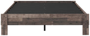 Streamlined design and a stunning two-tone finish come together in one simply extraordinary bed. This queen panel bed is sure to impress with platform styling and a rich brown finish over replicated pine grain texture. Its mid-century profile is a nod to the past, while the updated finish keeps it solidly in the present.