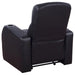 Enjoy the perfect blend of sophistication and comfort with this black leather recliner. Upholstered in smooth top grain leather everywhere the body touches, it offers a sleek, modern silhouette with refined stitching details. A high back cushion and low rounded track arms provide ergonomic support, while the pocket coil seating ensures long-lasting comfort. With a wall-hugger mechanism, this recliner saves space while delivering full relaxation, making it an ideal addition to a home theater or living room.