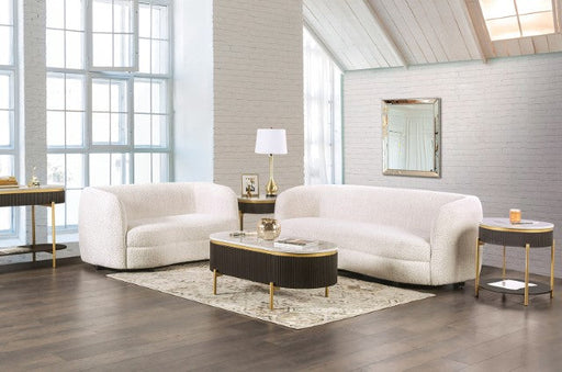 Give your guests a warm welcome with this deluxe living room ensemble. Soft fabric in a neutral tone wraps every inch of this piece, from the solid...