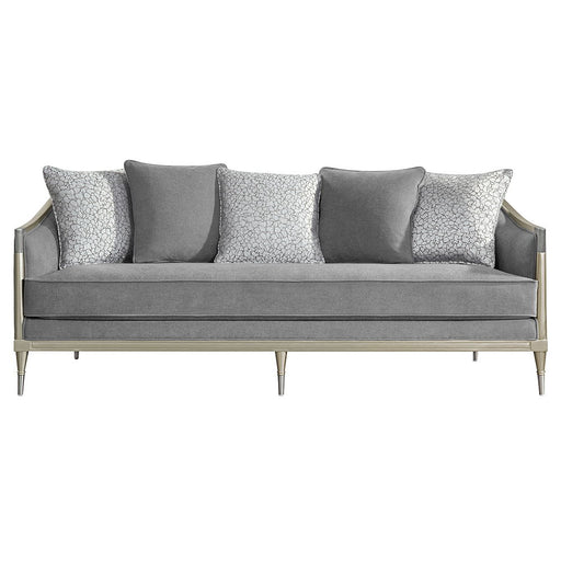 Fernando - Sofa With 5 Pillows - Gray Chenille & ChampagneProduct Features Pocket Coil Wooden Inner Frame Loose Seat & Tight Back Cushion M...