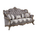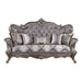 An assortment of materials and patterned hues highlight this elegant, traditional Elozzol collection. Plush and luxurious with rich upholstery, it offers an exquisitely comfortable space to lounge and relax after a long day. This set flaunts a rich, ornate frame in a champagne finish featuring intricate, detail-carved wooden trim and claw feet for a tasteful and timeless look. With its stylish, patterned pillows and thick, plush cushions, this magnificent sofa set gives any living room an opulent and inviting atmosphere. Turn your living room or family room into the relaxed centerpiece of your home with the Elozzol collection.