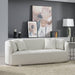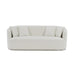 Unwind and rest when seated on this luxurious beige chenille Odette sofa. This lovely sofa is just the thing to inject drama into your living space. The plush seating offers countless hours of relaxation. The unique barrel shape immediately commands attention, and the brushed chrome stainless steel detailing finishes off the base in contemporary panache.