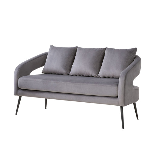 Elchanon - Loveseat With 2 Pillows - Gray Velvet & Gold