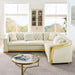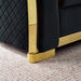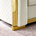 - Modern Luxury Design: Features eye-catching gold-toned stainless steel accents that elevate the sofas visual appeal and complement a range of home décor styles.