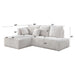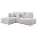 Manya sectional sofa draped in luxurious ivory fabric, offers both elegance and comfort. Its spacious design and plush cushions provide the perfect setting for relaxation and socializing. The neutral hue complements any decor, making it a versatile addition to your living space. Whether you're hosting guests or enjoying a quiet evening, it enhances your home's ambiance with its sophisticated and inviting presence.
