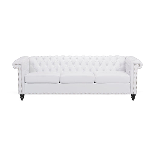 Contemporary Design: Featuring beautiful faux leather upholstery, rolled armrests, and nailhead trim, our three-seater sofa offers the look, feel,...